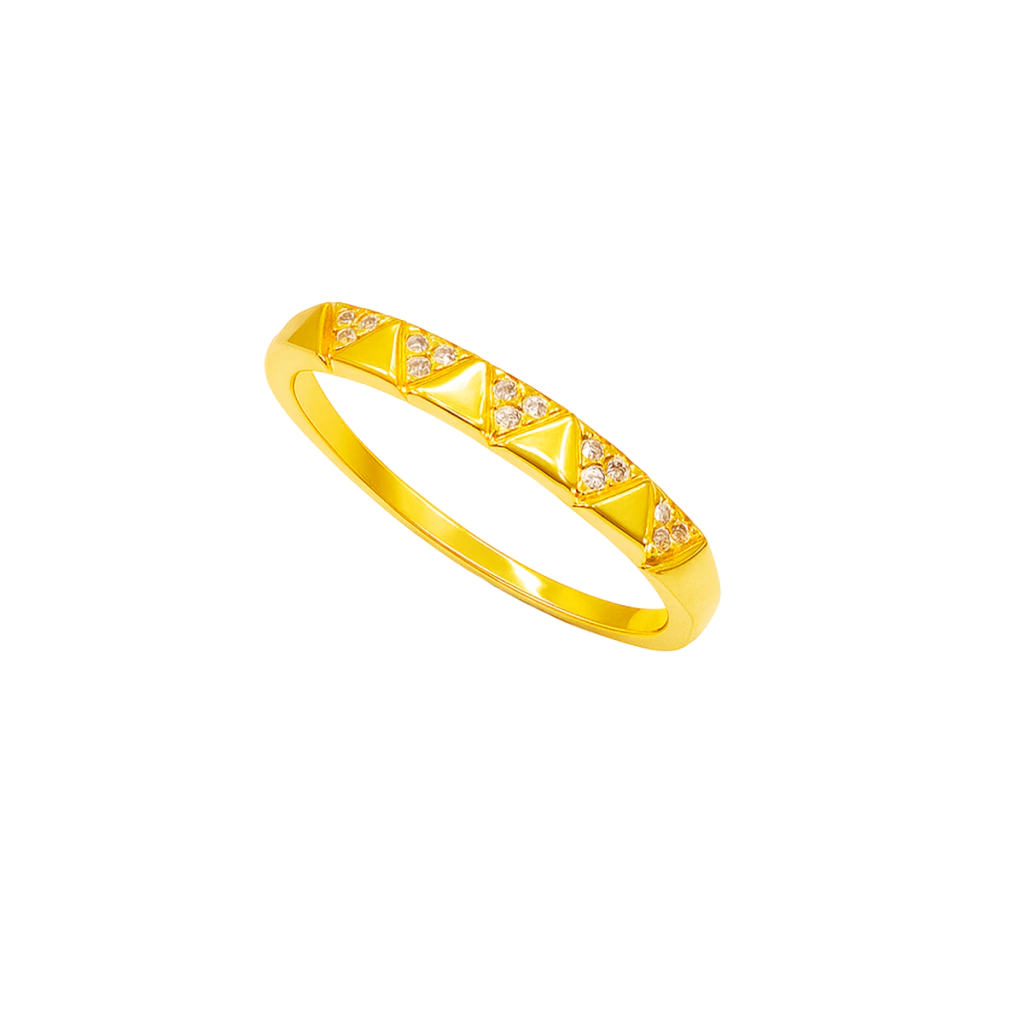 Inclua o Anel Cravejado de Estrelas com Ponto de Zircônia banhado a ouro e acrescente um brilho sutil e elegante às suas composições.