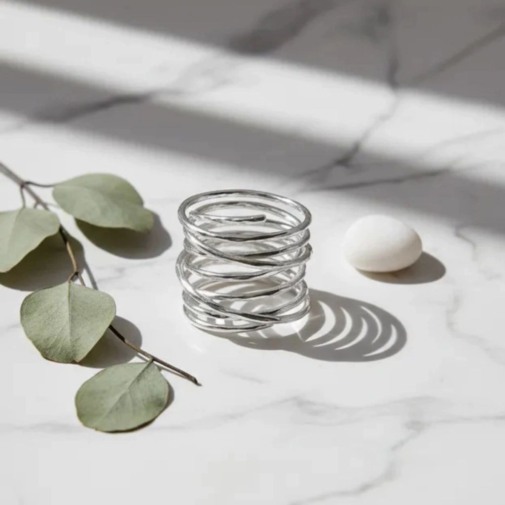 O Anel de Mola banhado a ródio une praticidade e sofisticação em um design que se ajusta ao dedo com leveza. A estrutura em mola confere conforto no uso e visual contemporâneo, enquanto o acabamento prateado do ródio acrescenta elegância versátil para compor do dia a dia às ocasiões especiais. Discreto e marcante na medida certa, funciona sozinho como destaque minimalista ou em mix com outros anéis, criando combinações modernas sem exageros.