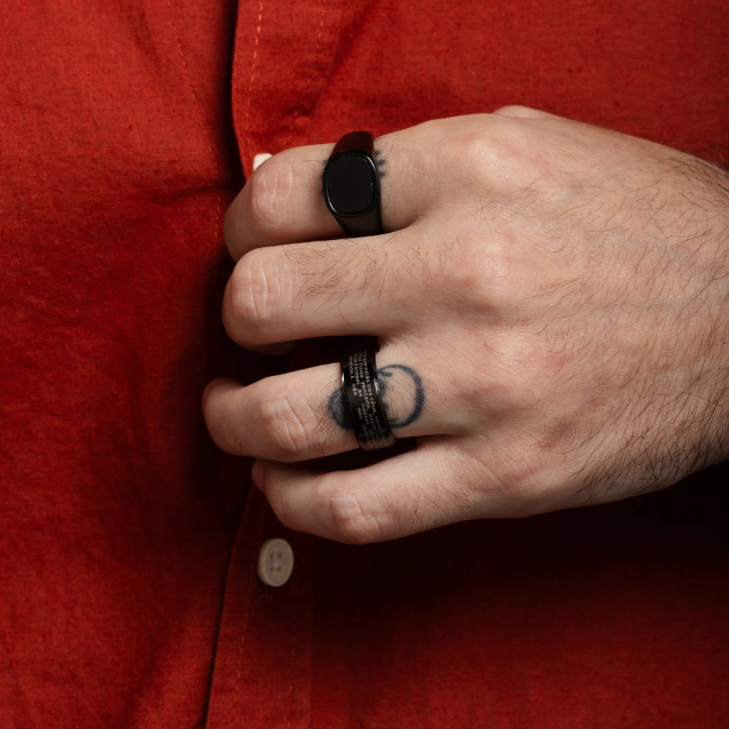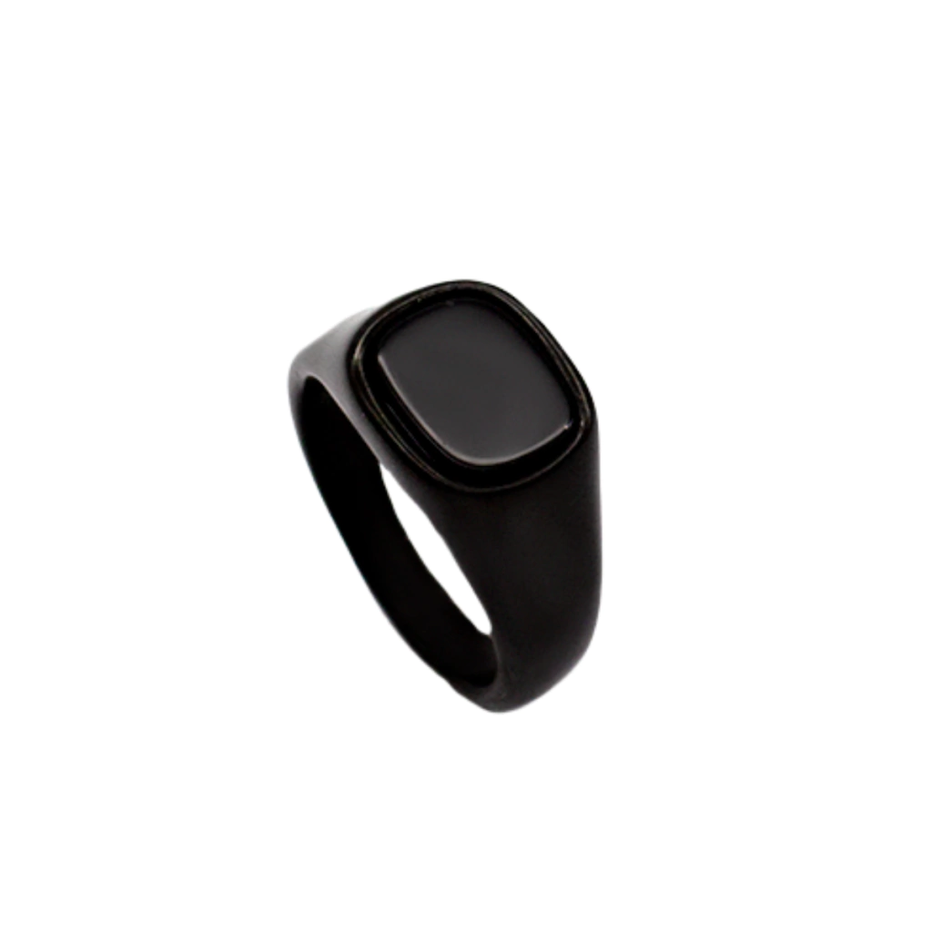 Estilo marcante com intensidade visual: o poder da pedra ônix em um anel contemporâneo e urbano.