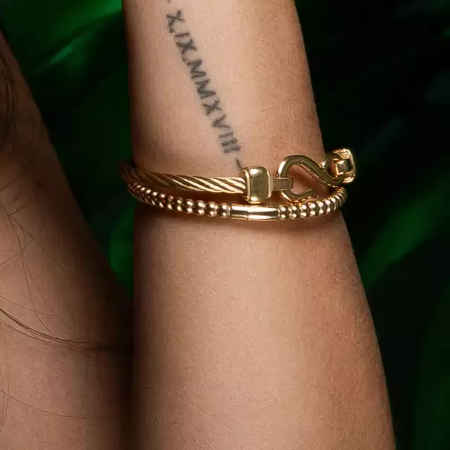 Adicione este bracelete à sua coleção e eleve seu estilo com o toque moderno e duradouro do PVD dourado!