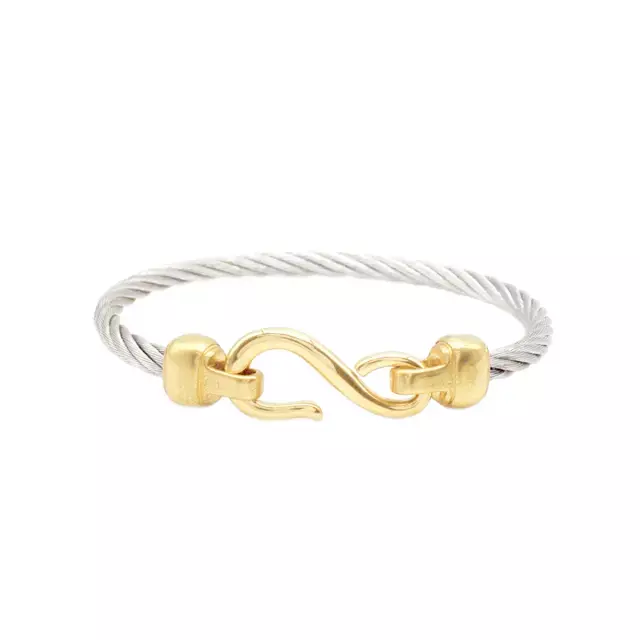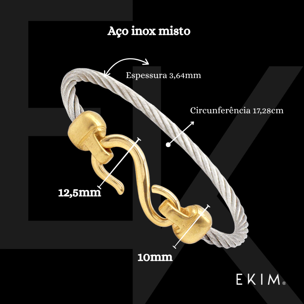 Este bracelete em aço inox apresenta acabamento misto, que mescla superfícies polidas e escovadas para criar um visual moderno e dinâmico. O fecho em formato de “S” adiciona personalidade ao design, além de proporcionar fechamento seguro e fácil manuseio. Confeccionado em aço inox de alta qualidade, o bracelete oferece resistência à oxidação e ao desgaste diário, garantindo durabilidade e conforto no uso prolongado. Versátil, pode ser usado sozinho para um look minimalista ou combinado com outros acessórios para composições mais ousadas, adaptando-se a diferentes estilos e ocasiões.