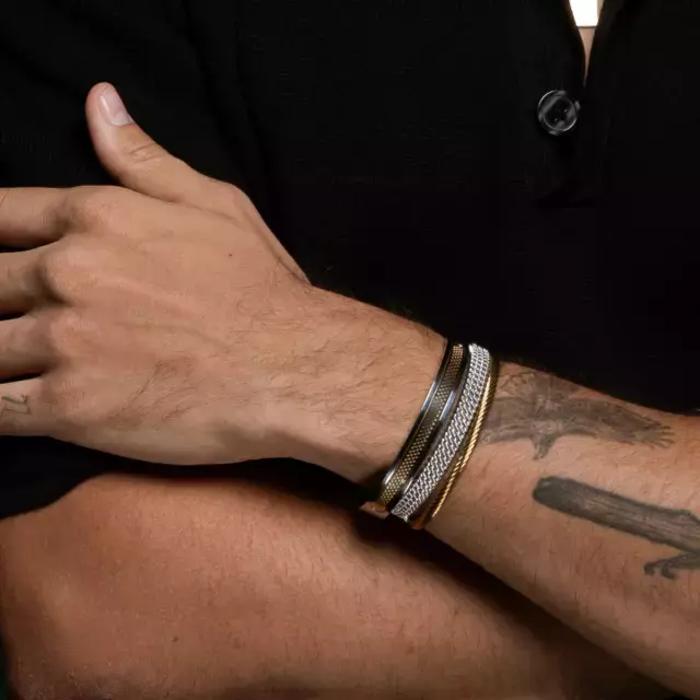 Este bracelete feminino apresenta uma superfície completamente lisa em aço inox, realçada por um detalhe central em relevo no formato de colmeia. O revestimento PVD preto confere um acabamento sofisticado e resistente à oxidação, mantendo o tom escuro mesmo com uso contínuo. A colmeia central adiciona textura e personalidade ao design minimalista, criando um ponto de interesse sutil no pulso. Confeccionado em material rígido, o bracelete envolve o pulso de forma confortável sem a necessidade de fechos complexos. Versátil, pode ser usado sozinho para valorizar o motivo geométrico ou combinado com outras pulseiras para composições contemporâneas, adaptando-se perfeitamente a looks do dia a dia e a ocasiões especiais.