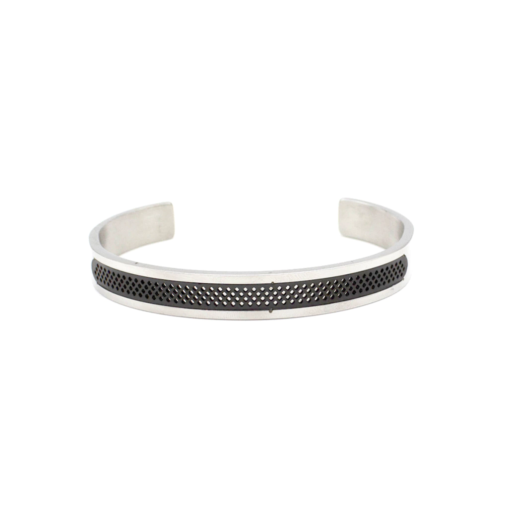 Adicione este bracelete à sua coleção e destaque seu estilo com o charme geométrico da colmeia em aço inox PVD preto!