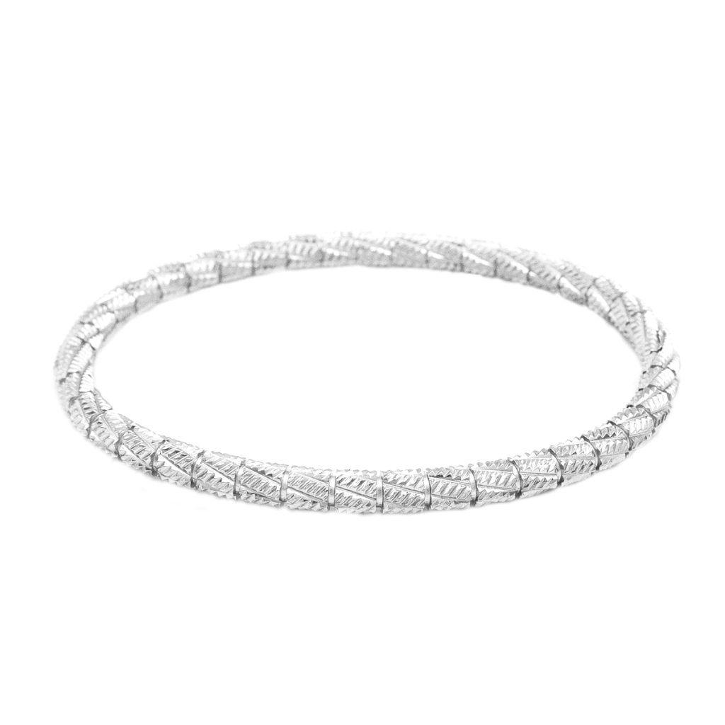 Inove seu styling com este bracelete em PVD prateado que une firmeza e textura trançada o acessório perfeito para um look moderno e resistente!