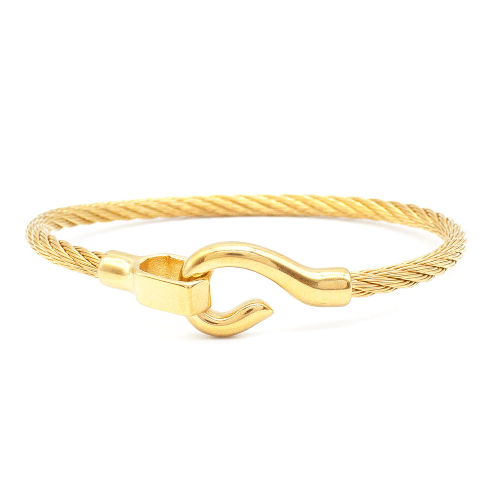 Realce seu estilo com este bracelete trançado em PVD dourado e fecho anzol a combinação perfeita de textura, segurança e sofisticação!