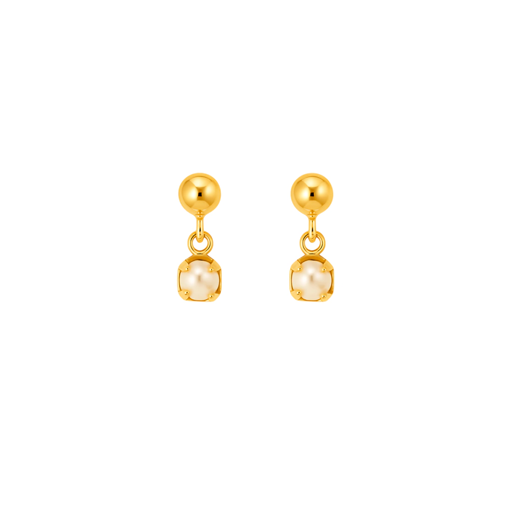 Delicadeza clássica com base de bolinha e pérola suspensa em dourado.