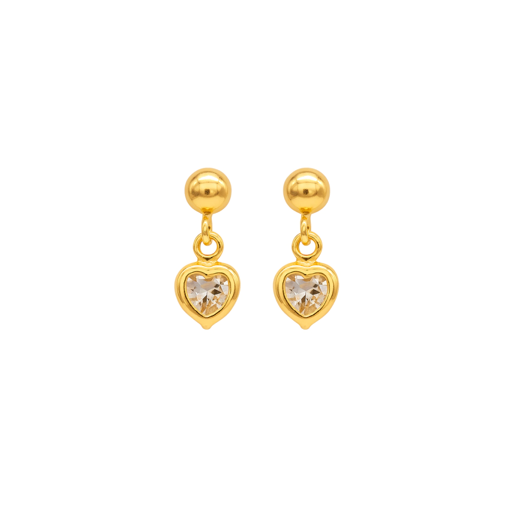 Escolha o Brinco Baby Bolinha com Coração Pendurado banhado a ouro e adicione um toque de romantismo e brilho sutil ao seu dia a dia.