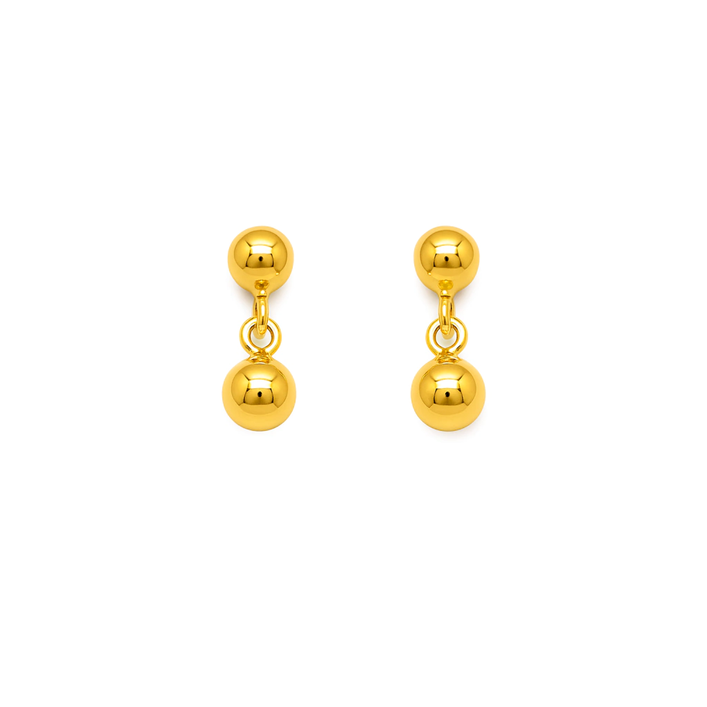 Escolha o Brinco Baby de Bolinha Pendurada banhado a ouro e acrescente um toque clássico e sutil às suas composições.
