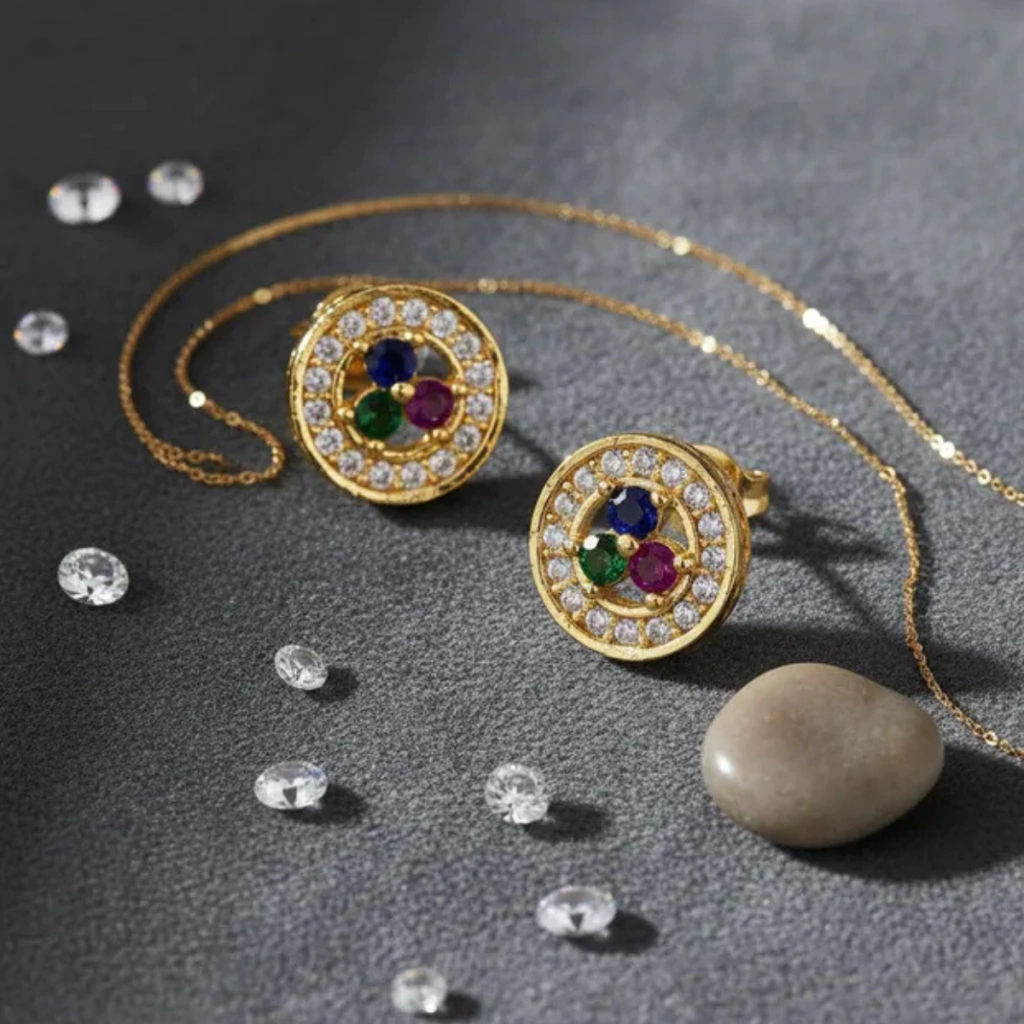 Discreto e luminoso: círculo mini com zircônias coloridas e elegante.
