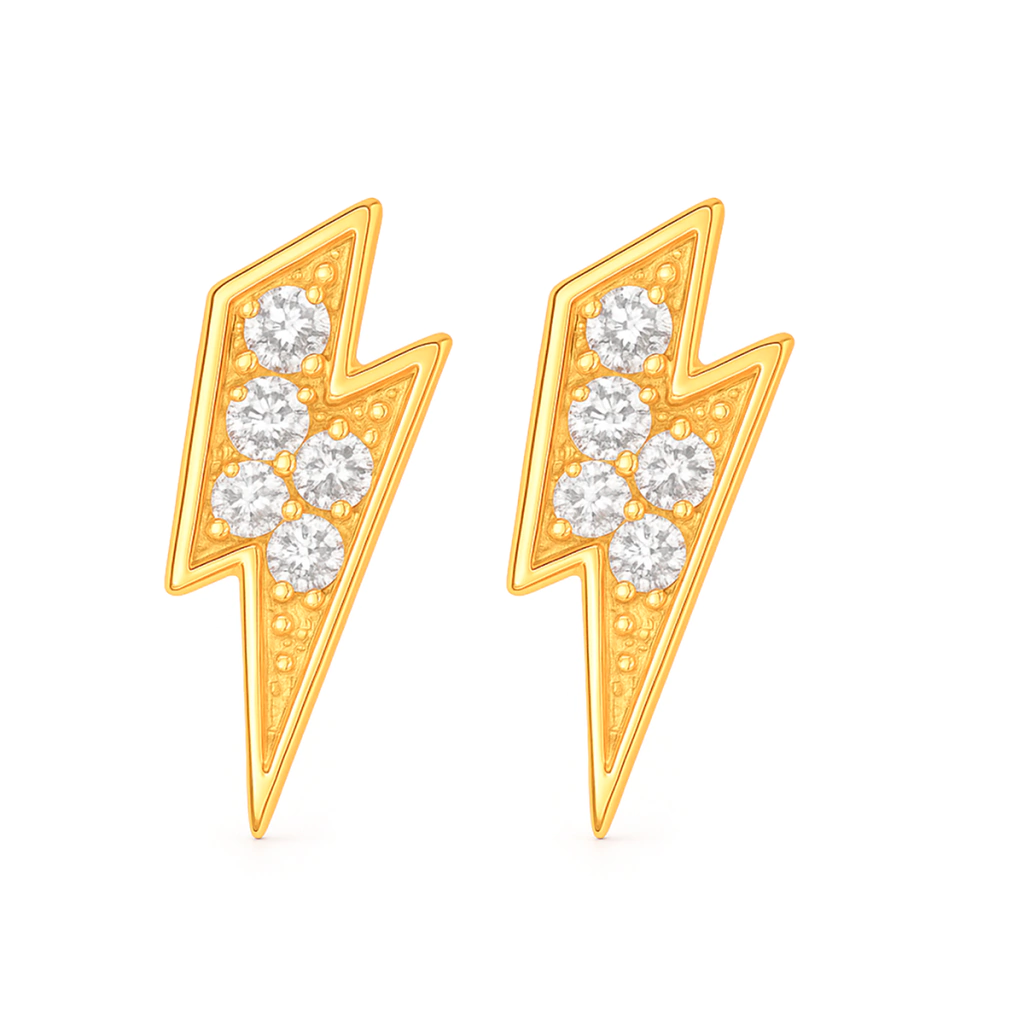 Estilo elétrico com brilho intenso: brinco em formato de raio cravejado com zircônias e banho dourado que ilumina qualquer look.