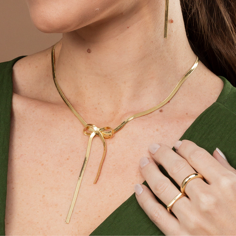 Um laço de charme dourado para envolver seu pescoço com delicadeza e sofisticação.