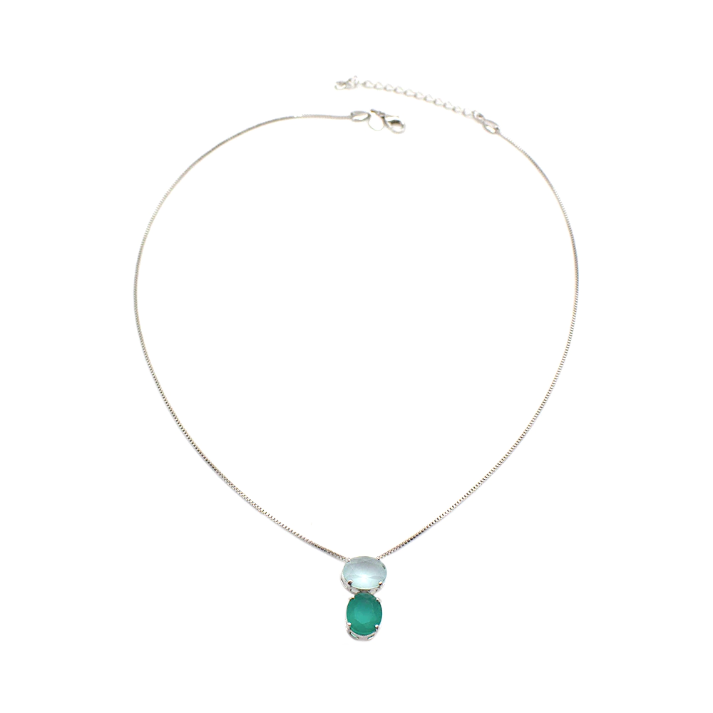 O Colar com Pedras Ovais em Tons de Verde e Rosa é uma joia que transmite feminilidade, equilíbrio e sofisticação com delicadeza. As pedras, em formato oval, são cuidadosamente combinadas em tonalidades que se complementam o rosa romântico e o verde suave criando uma peça visualmente harmoniosa e cheia de estilo. Ideal para destacar o colo com leveza, o colar possui estrutura fluida e acabamento polido, tornando-o confortável e versátil para o dia a dia ou ocasiões especiais. Uma peça que une design clássico com um toque moderno e vibrante, perfeita para mulheres que gostam de cor com elegância.