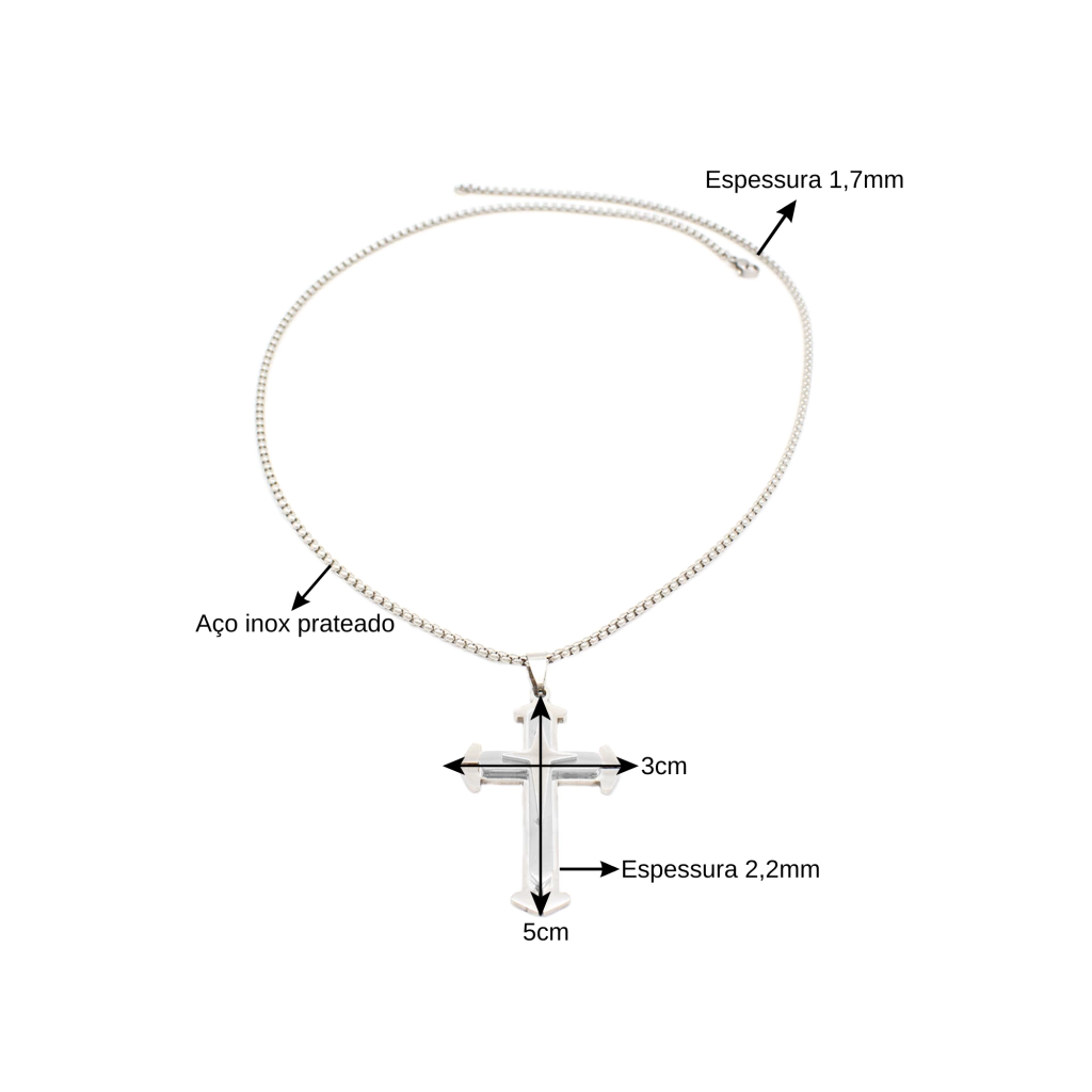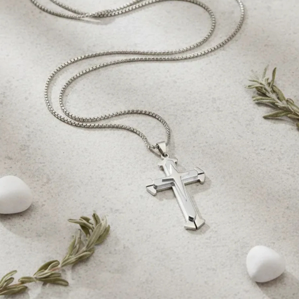 Este pingente apresenta duas cruzes lisas entrelaçadas, criando um visual clean e moderno. Produzido em aço inox de alta qualidade com revestimento PVD prateado, oferece brilho duradouro e resistência ao desgaste diário. A simplicidade das linhas realça o símbolo com sofisticação, tornando-o versátil para usar sozinho ou em camadas com outras correntes. Ideal para quem busca um acessório atemporal que combine significado e estilo contemporâneo.