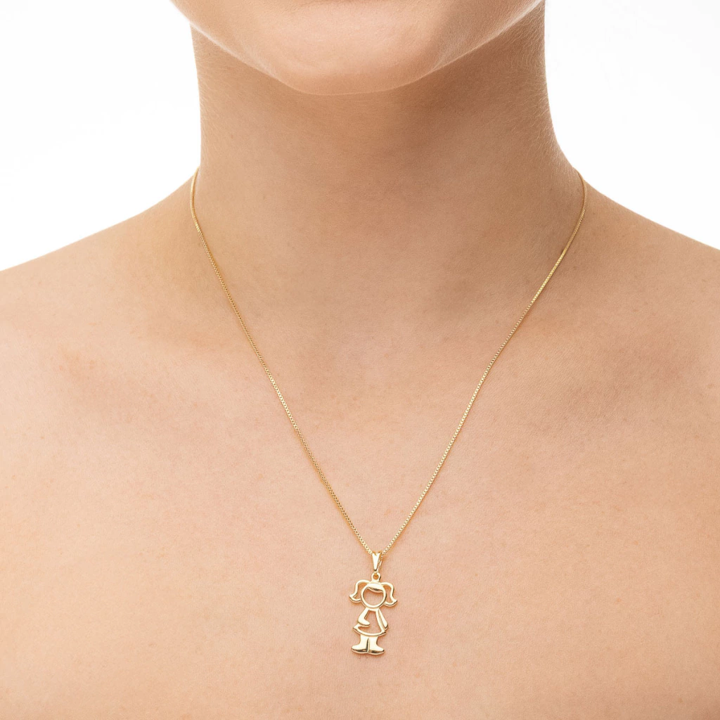 O Pingente de Menina Vazado traz o contorno delicado da silhueta infantil, em um design leve e afetivo. O banho de ouro adiciona brilho quente e atemporal, perfeito para compor colares do dia a dia ou presentear quem ama. Fica lindo sozinho ou em mix de pingentes (coração, inicial, menino).