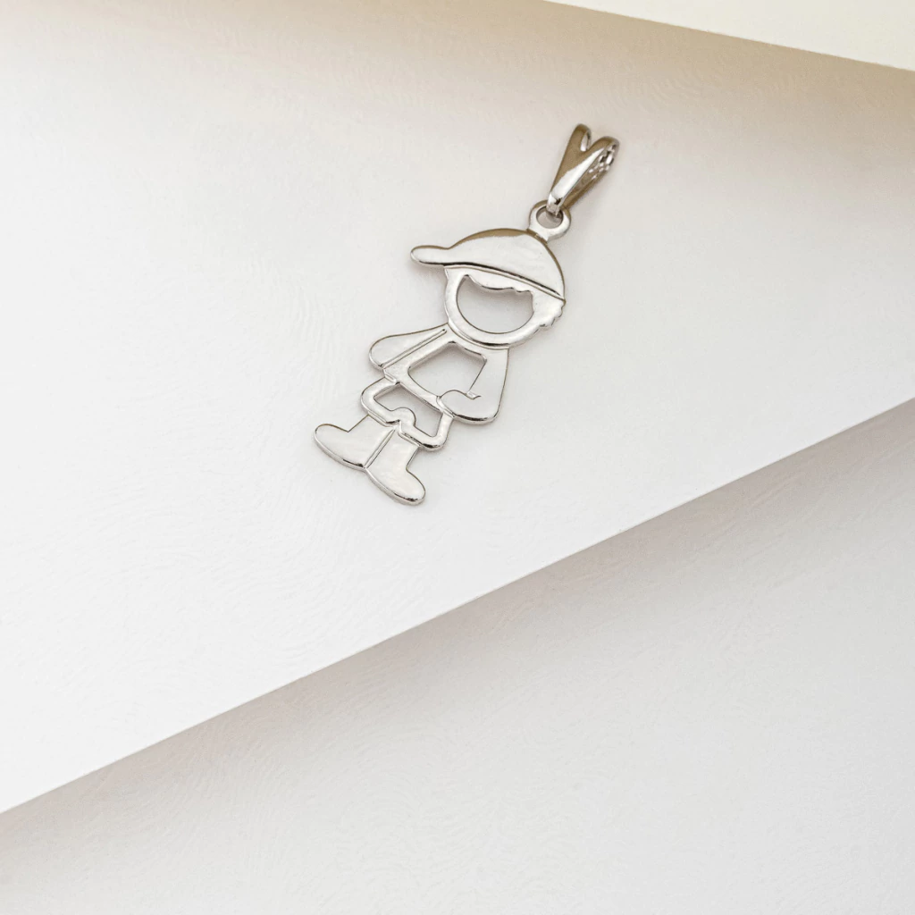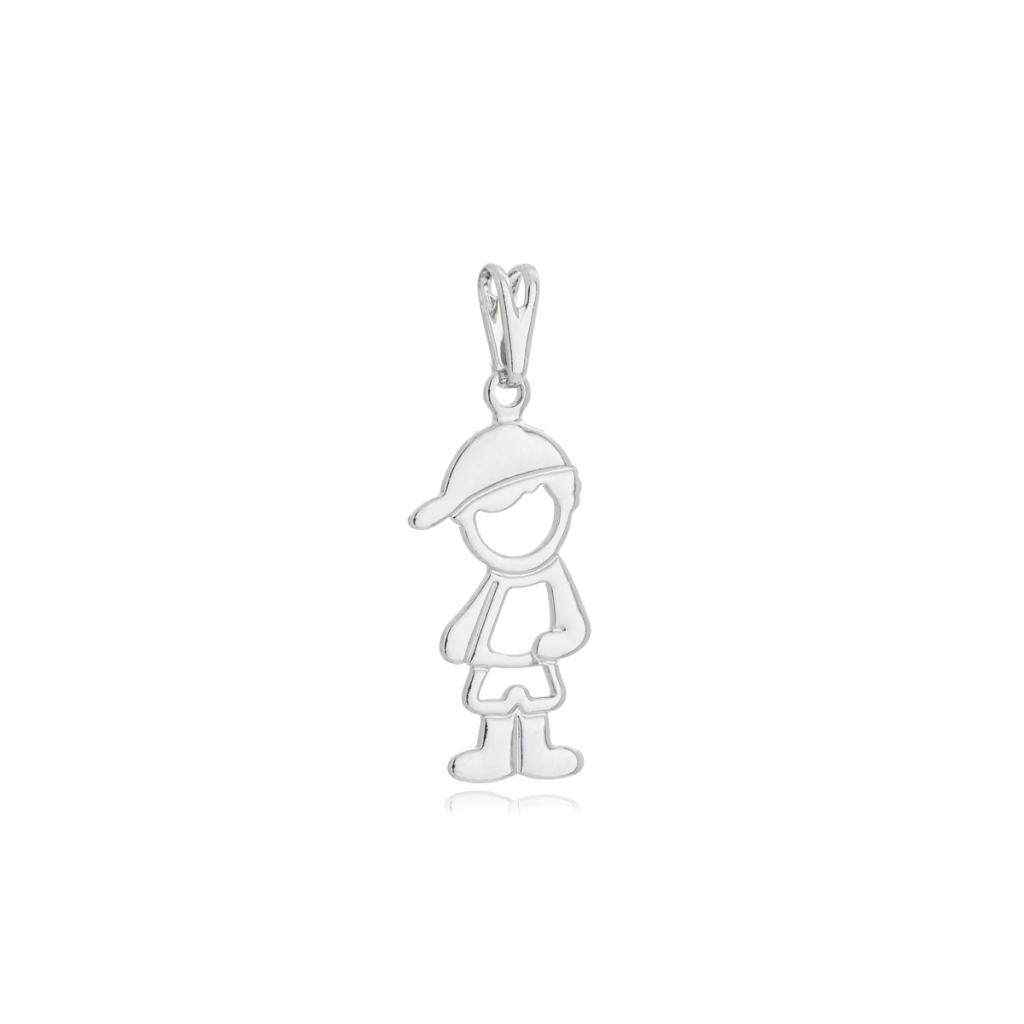 O Pingente de Menino Vazado apresenta a silhueta minimalista em um design vazado e leve. O banho de ródio confere acabamento prateado moderno e versátil. Use solo para um destaque sutil ou crie um mix de pingentes com iniciais e símbolos.