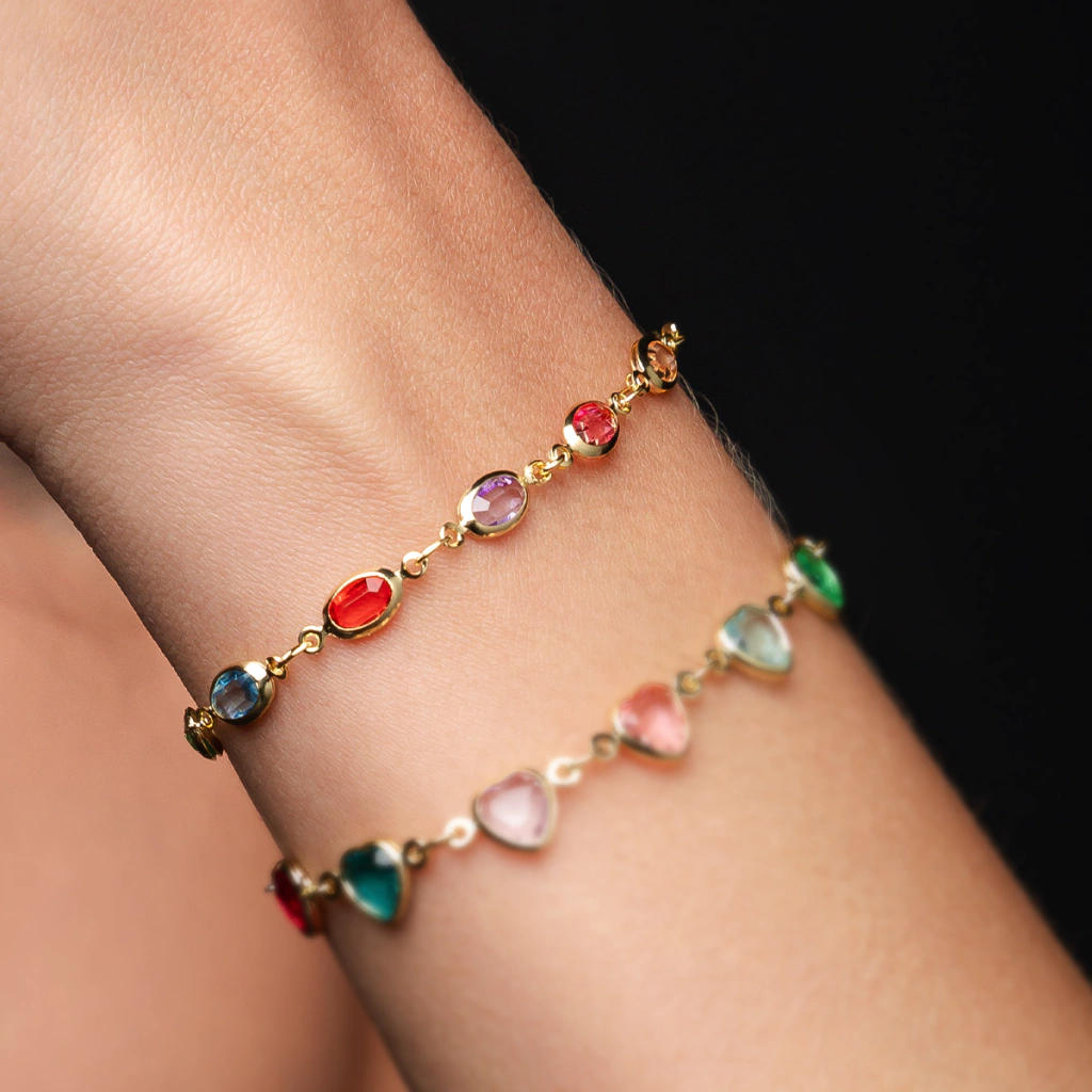 A Pulseira Ajustável com Zircônias Ovais Coloridas Banhada a Ródio é uma joia ideal para quem ama detalhes delicados e modernos. As pedras coloridas em corte oval conferem vida ao visual, enquanto o banho prateado em ródio reforça a sofisticação com brilho durável e acabamento refinado. Com fecho ajustável e caimento leve, essa pulseira é confortável e perfeita para o uso diário ou eventos especiais. Uma peça encantadora que equilibra cor, brilho e elegância.
