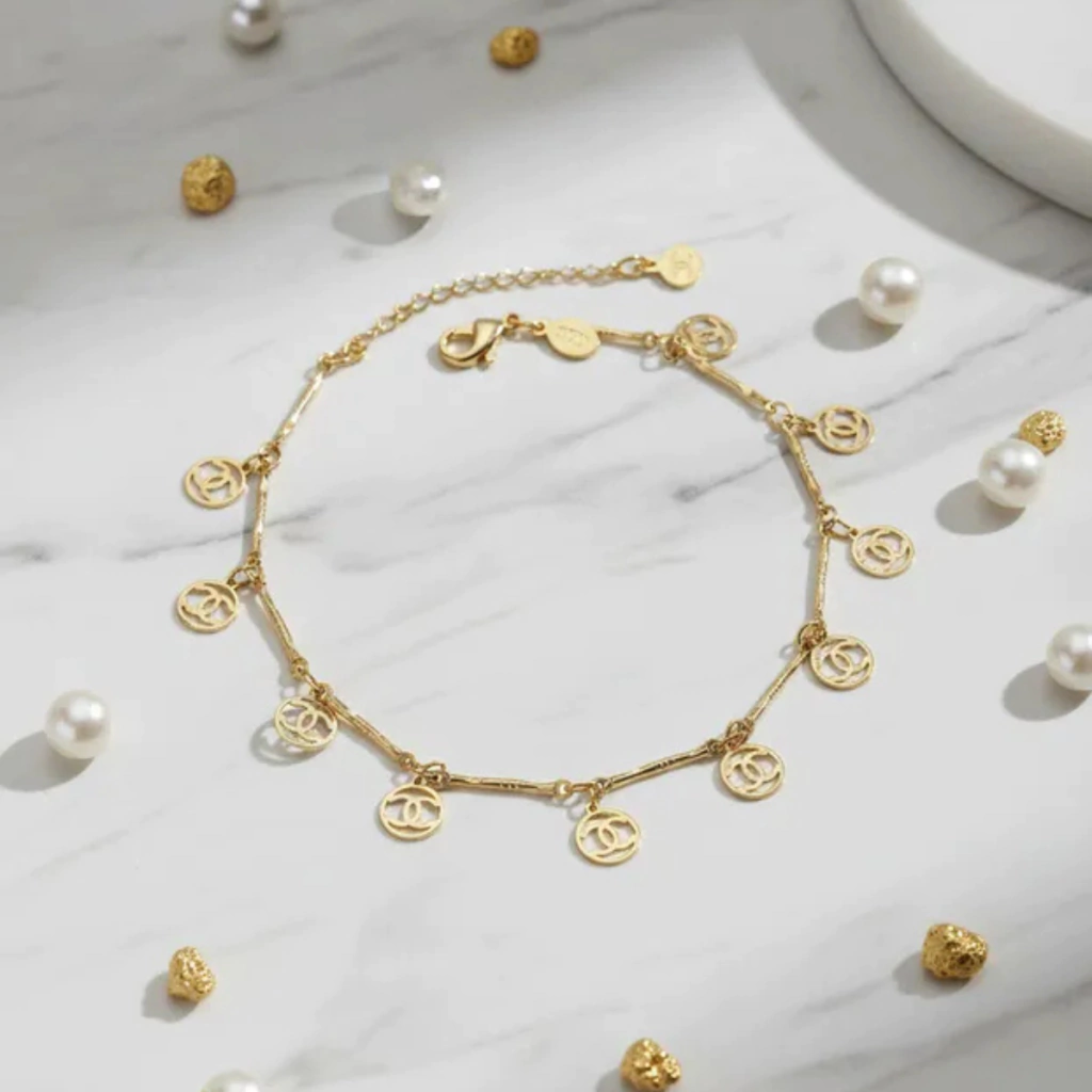 A Pulseira com Berloques de Símbolos Banhada a Ouro 18cm é uma joia feminina que une delicadeza e personalidade. Com berloques temáticos cuidadosamente selecionados, ela representa momentos, crenças ou desejos, tornando cada peça única e cheia de significado. Seu acabamento dourado traz um brilho suave e sofisticado, enquanto o tamanho de 18cm garante caimento ideal no pulso com leveza e conforto. É perfeita para composições delicadas, uso diário ou como presente marcante e especial.