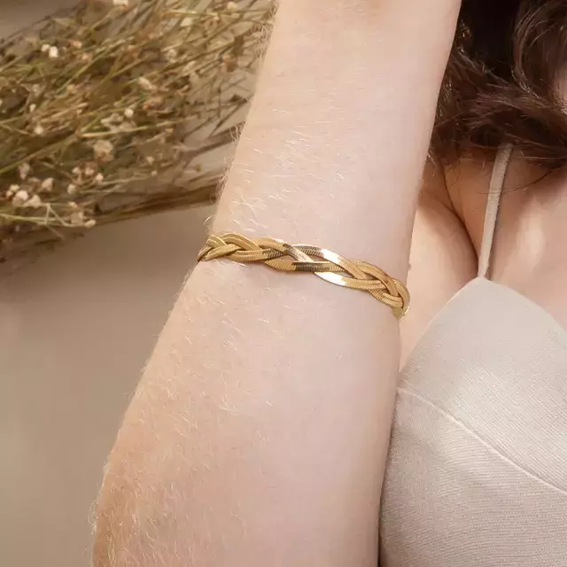 Adicione esta pulseira trançada snake à sua coleção e realce seu estilo com a combinação perfeita de textura e brilho duradouro!