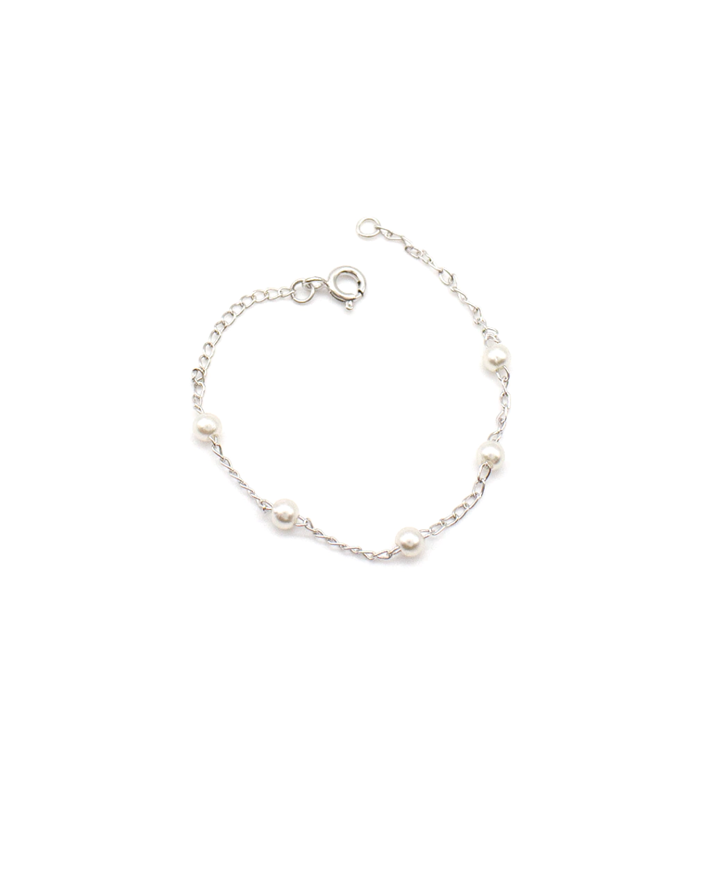 Ofereça brilho e delicadeza em forma de joia garanta agora a pulseira infantil banhada a ródio com mini pérolas e torne cada momento ainda mais especial.