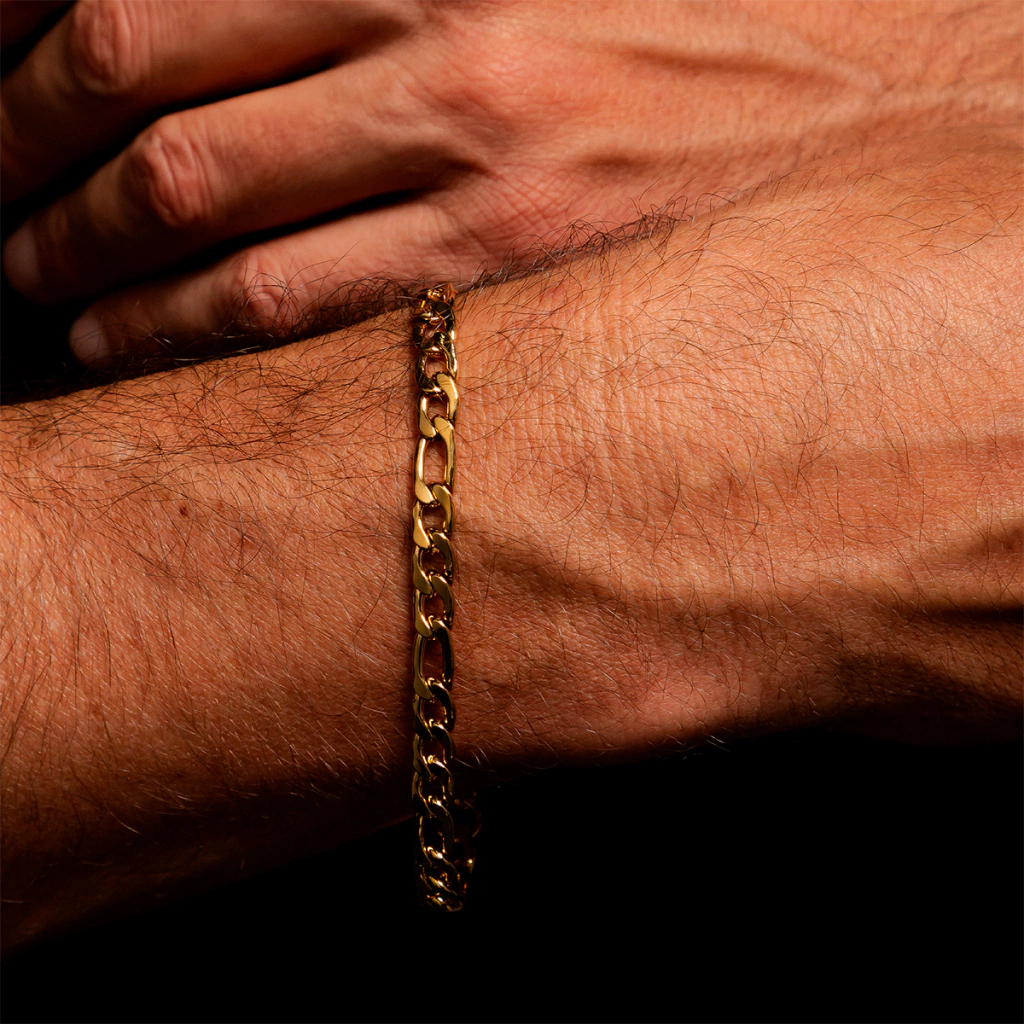 Elo Figaro 3×1 robusto com brilho PVD dourado impacto e resistência no pulso