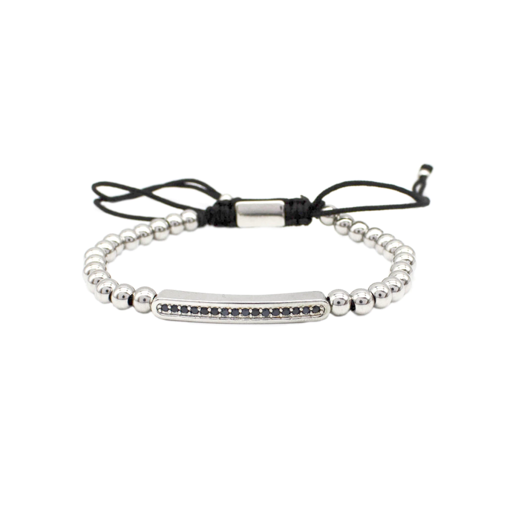 Esta pulseira masculina apresenta esferas polidas em sequência, intercaladas por uma placa central retangular finamente cravejada em zircônias que refletem a luz a cada movimento. Confeccionada em aço inox com revestimento PVD prata, a peça oferece alta resistência à oxidação e ao desgaste, mantendo seu brilho mesmo com uso contínuo. Graças ao cordão trançado ajustável, adapta-se confortavelmente a diferentes tamanhos de pulso, garantindo segurança sem apertar. Versátil, pode ser usada sozinha para destacar o pulso ou combinada com outras pulseiras para composições modernas, sendo ideal tanto para o dia a dia quanto para ocasiões especiais.