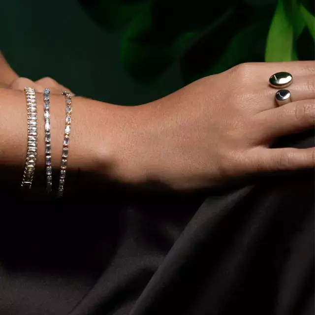 Esta pulseira Riviera feminina exibe um alinhamento impecável de zircônias cravejadas que percorrem toda a extensão, criando um efeito de brilho uniforme e elegante. O banho em ródio confere resistência ao desgaste e um acabamento prateado intenso, valorizando cada pedra com sutileza. Versátil, a peça pode ser usada sozinha para um toque de requinte discreto ou combinada com outras pulseiras para sobreposições modernas. Seu design atemporal adapta-se tanto ao dia a dia quanto a ocasiões especiais, proporcionando um visual delicado e cheio de personalidade.